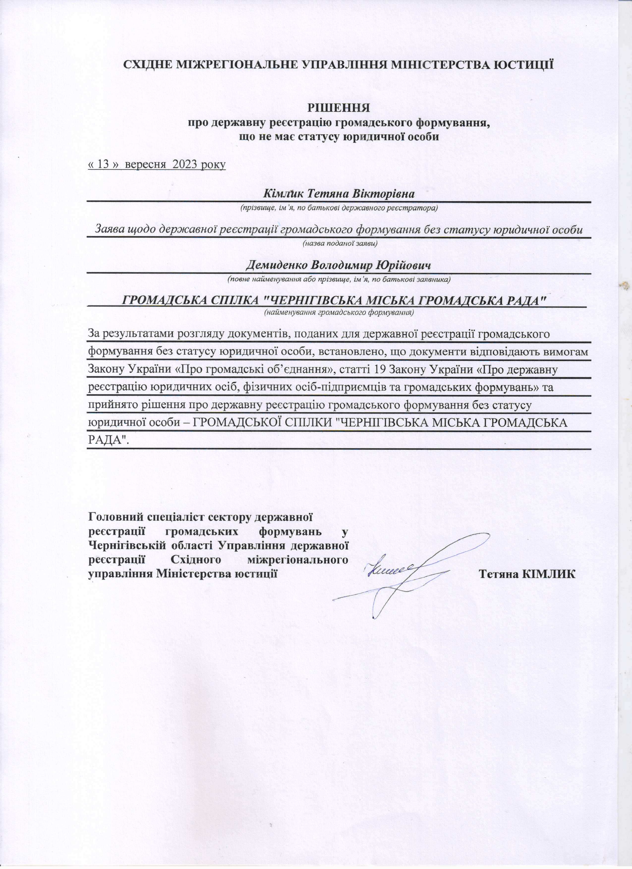1.1.12. Про створення громадської спілки "ЧЕРНІГІВСЬКА МІСЬКА ГРОМАДСЬКА РАДА"