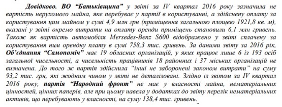 НАЗК также, по сути, раздало более 167,6 млн гривен государственного финансирования политических партий. Перед этим агентство как бы анализирует отчеты партий. Счетная палата считает, что сотрудники ведомства провели анализ формально, поскольку не нашли в отчетности существенных недостатков или недостоверных данных. Напротив, аудиторы установили многочисленные факты неполноты и недостоверности данных в отчетах партий, получивших госфинансирование.