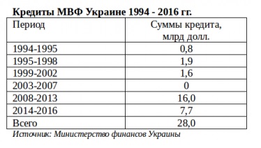 За 22 года (с 1994 по 2016 год, – ред.) сотрудничества с МВФ Украина была профинансирована на огромную сумму, получив более 28 млрд долларов. При этом средства, полученные от МВФ и других международных финансовых организаций, были потрачены не на экономическое развитие, а на выплату предыдущих долгов, текущие расходы и социальные программы. За все годы ни одного глобального экономического проекта с финансовым участием МВФ так и не было реализовано. По сути все деньги были потрачены нерационально, а нынешнему и последующим поколениям остается лишь возвращать накопленные предыдущими правительствами долги.