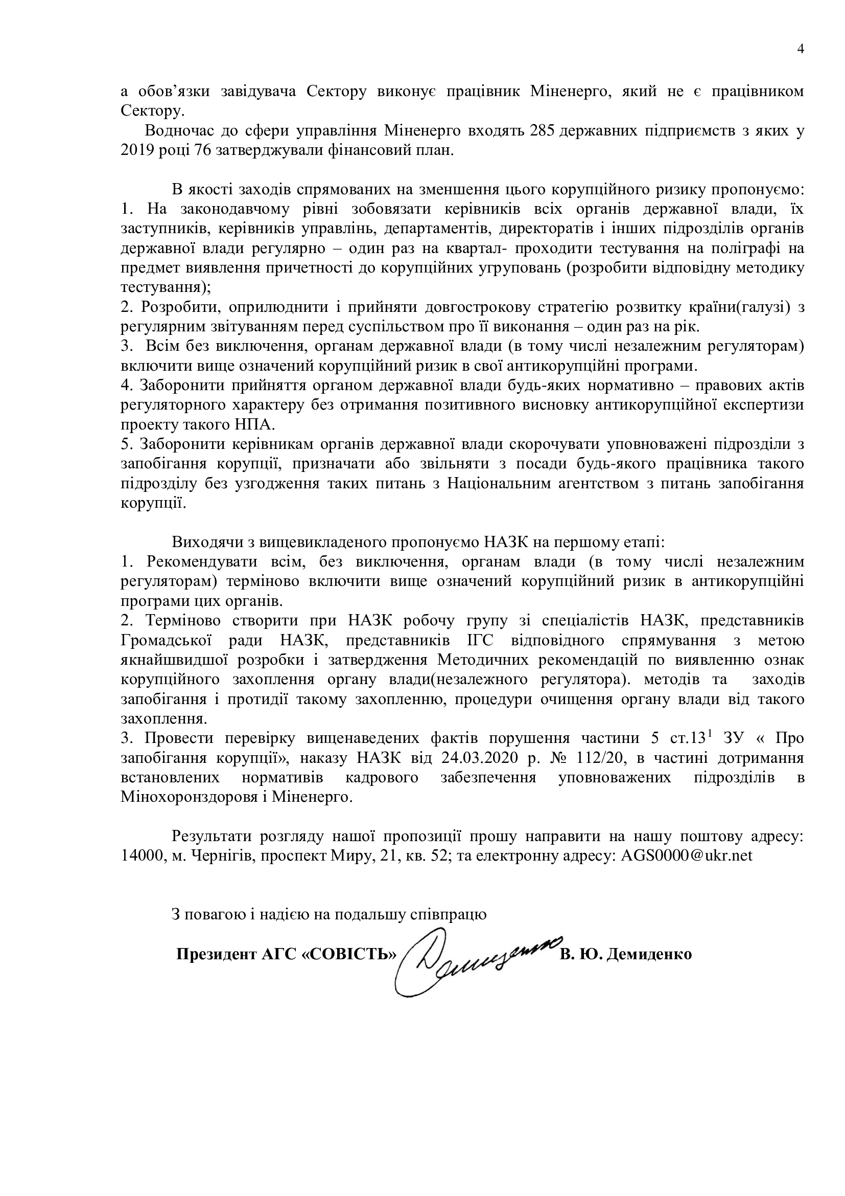 1.7.43. Лист Голові Громадської ради при Національному агентстві з питань запобігання корупції