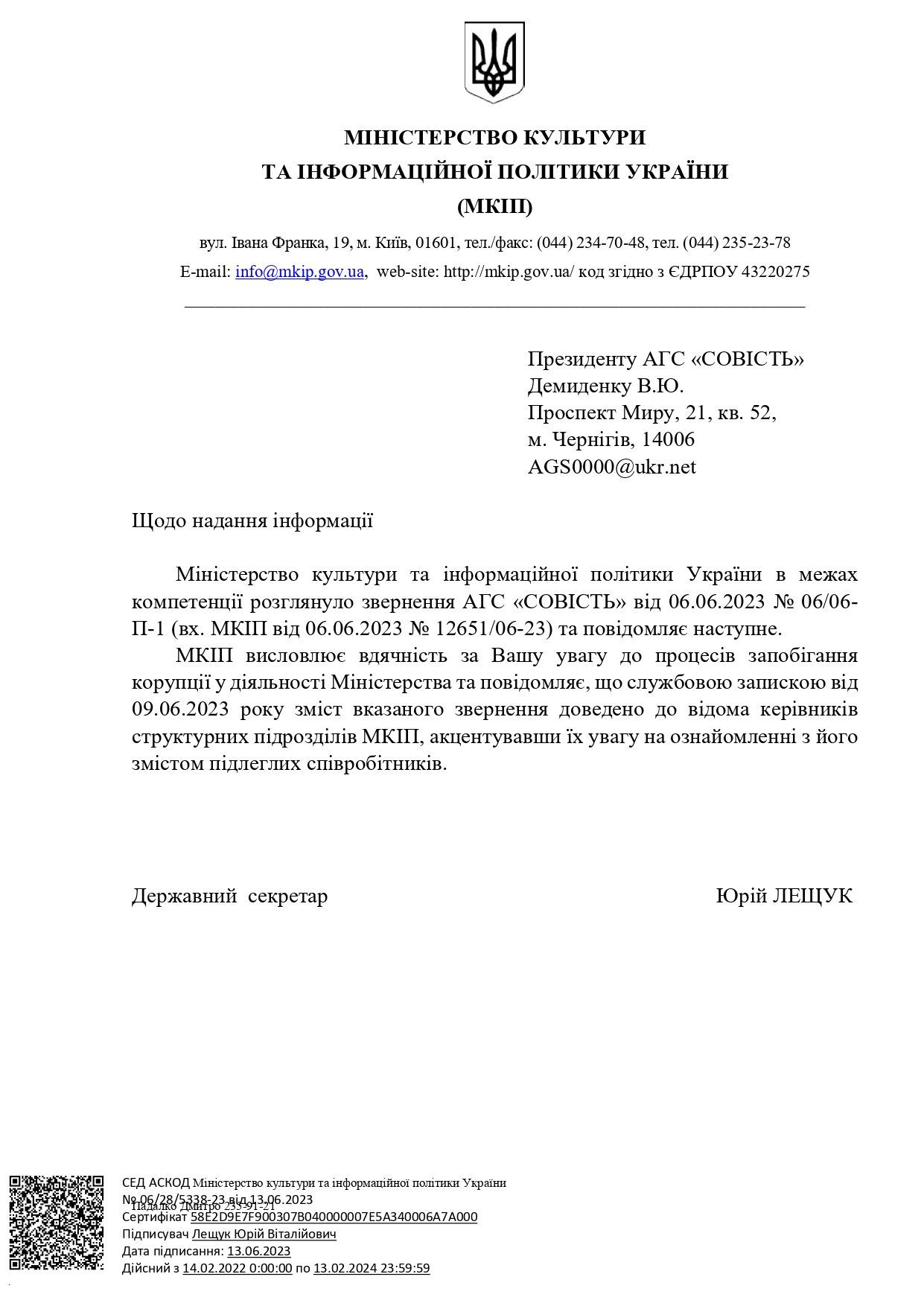 Лише сумління мало мати, ще й «СОВІСТЬ» має мордувати