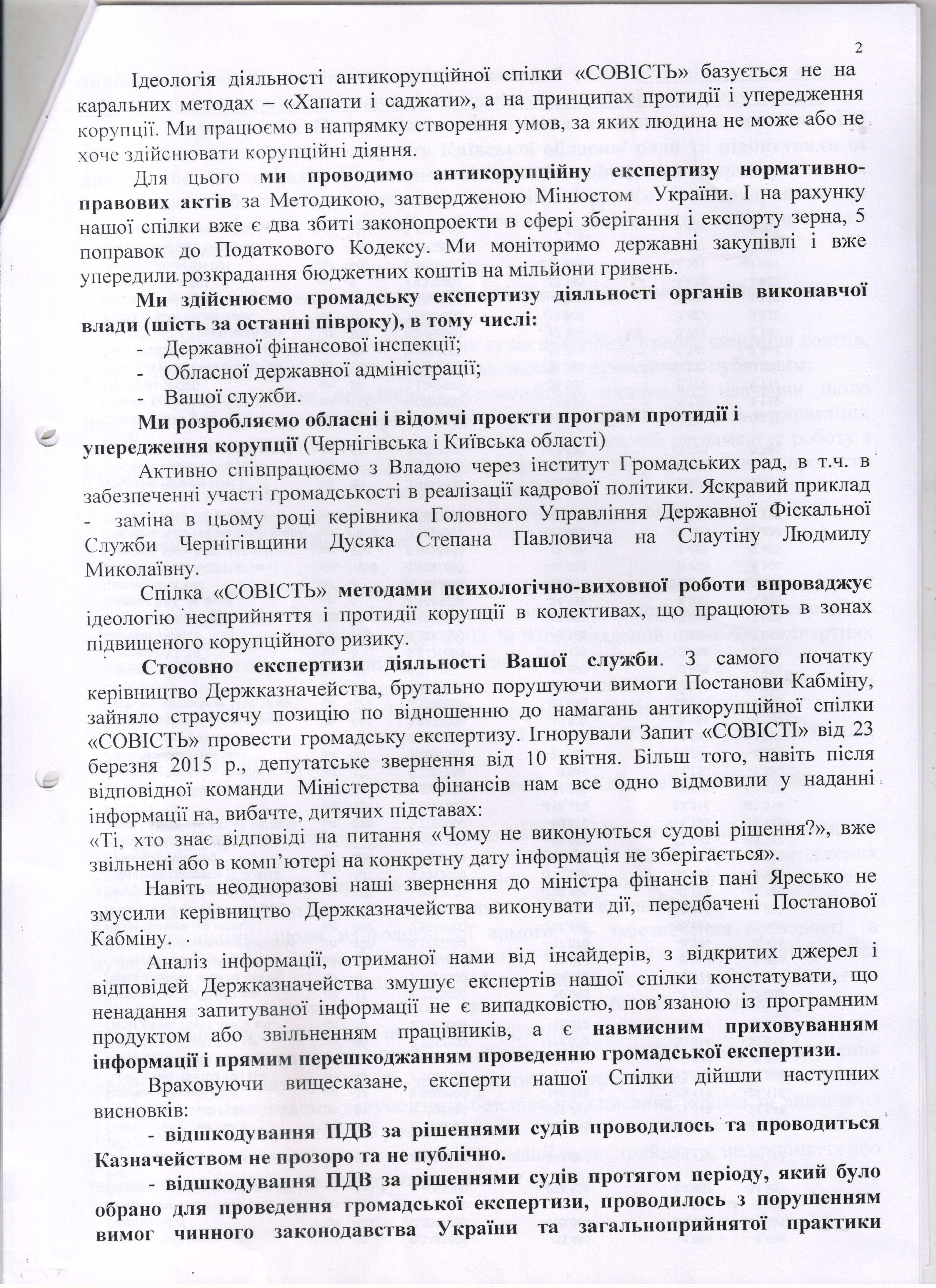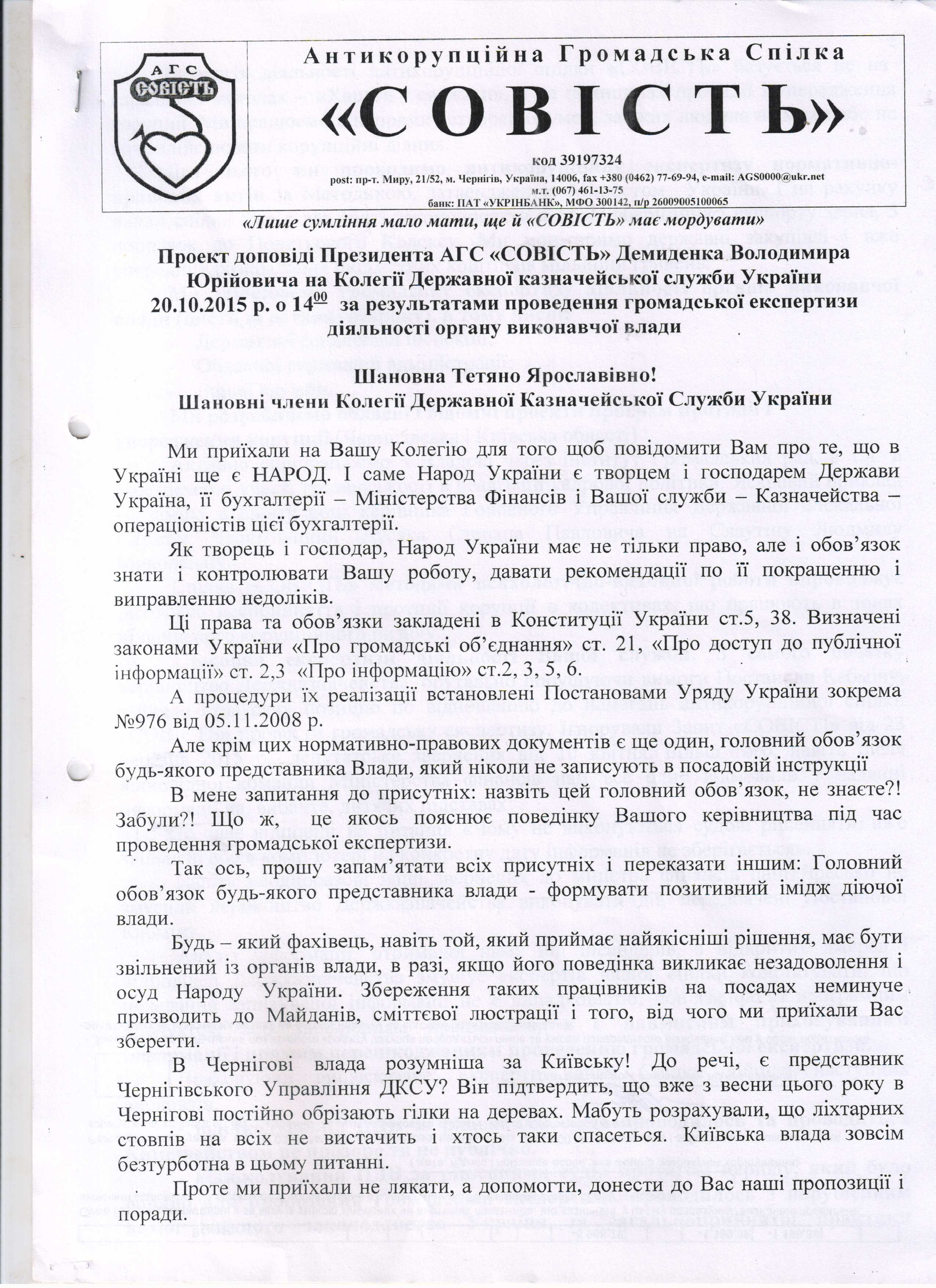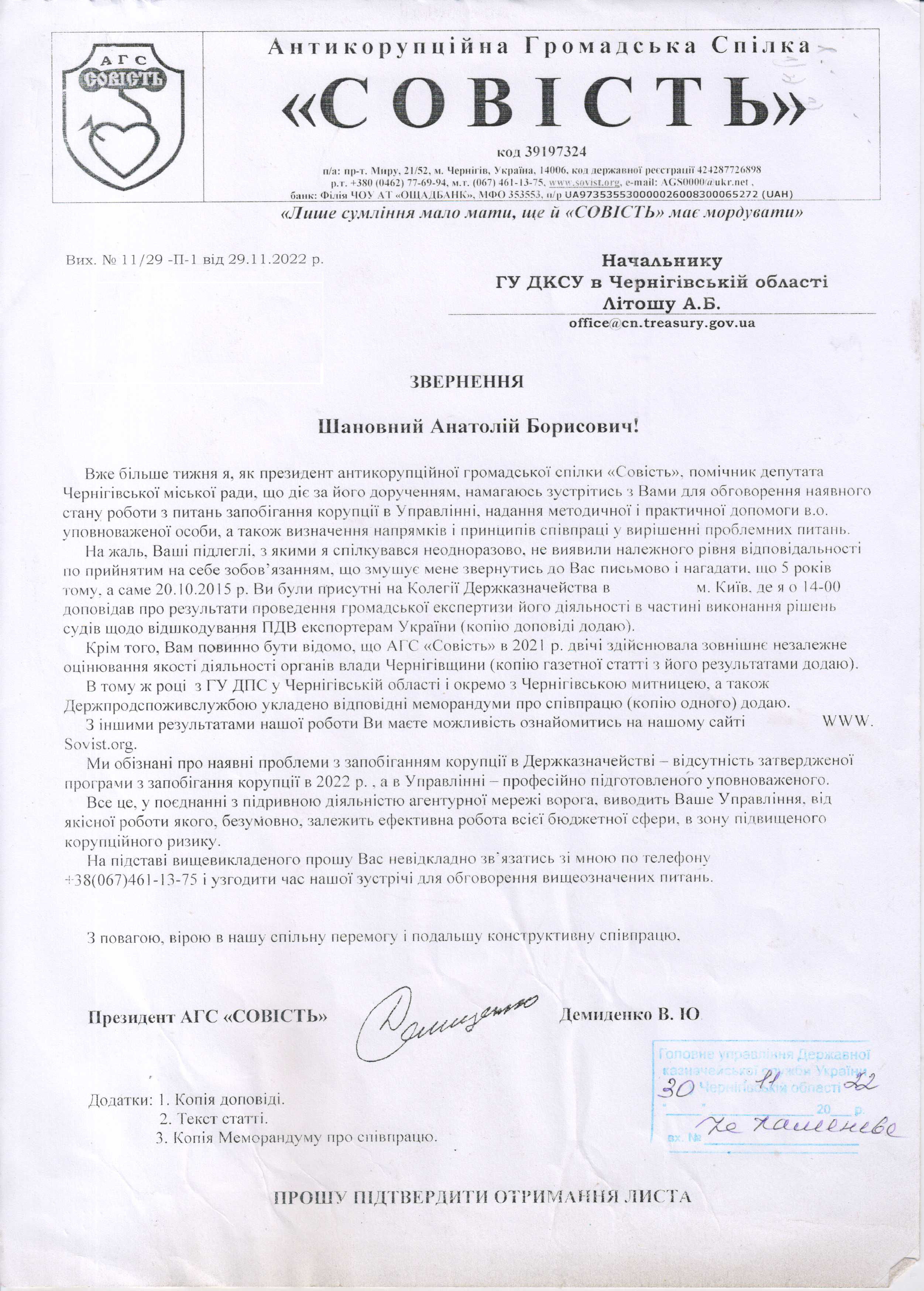 1.7.63. ЗВЕРНЕННЯ до Начальника ГУ ДКСУ в Чернігівській області