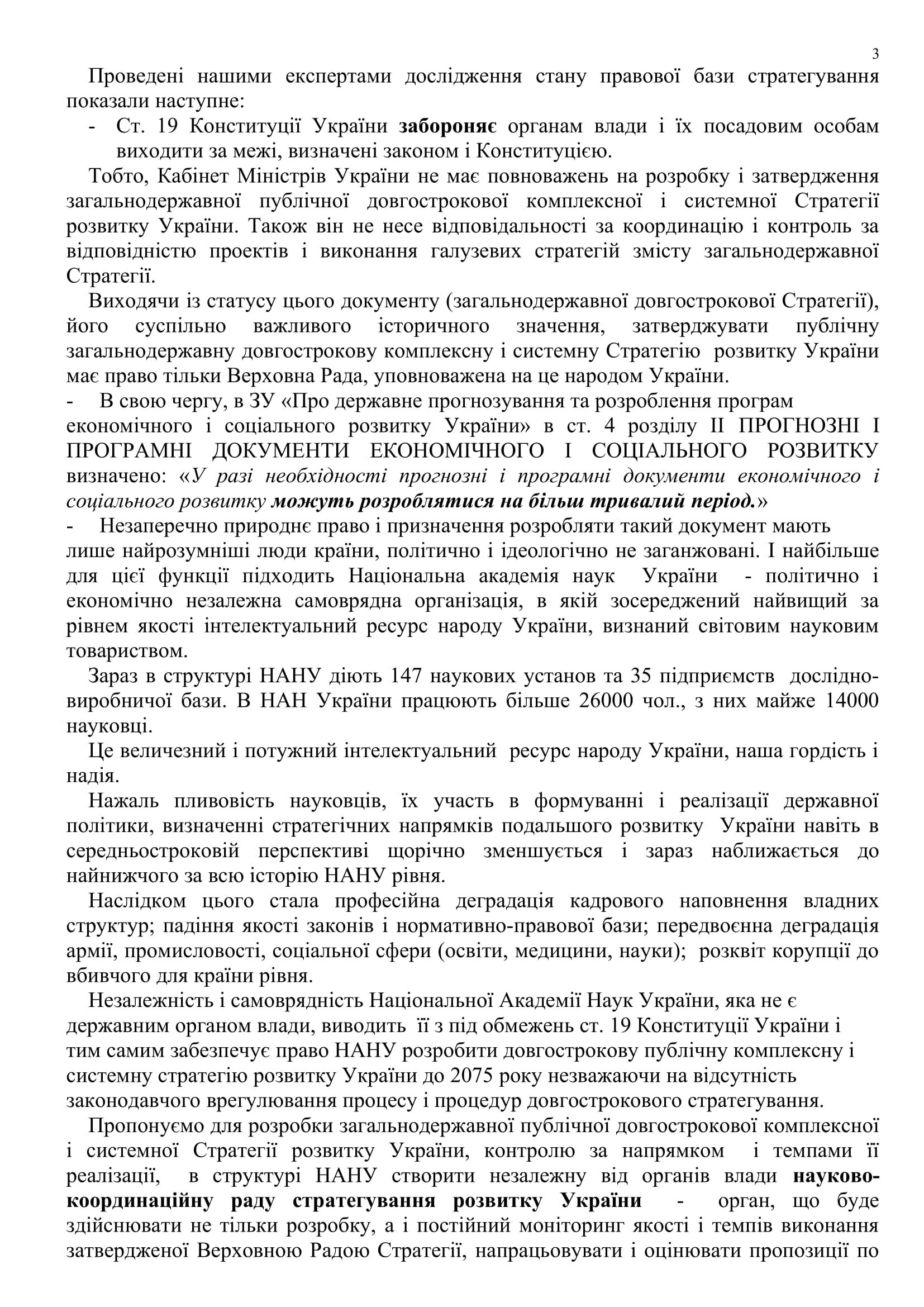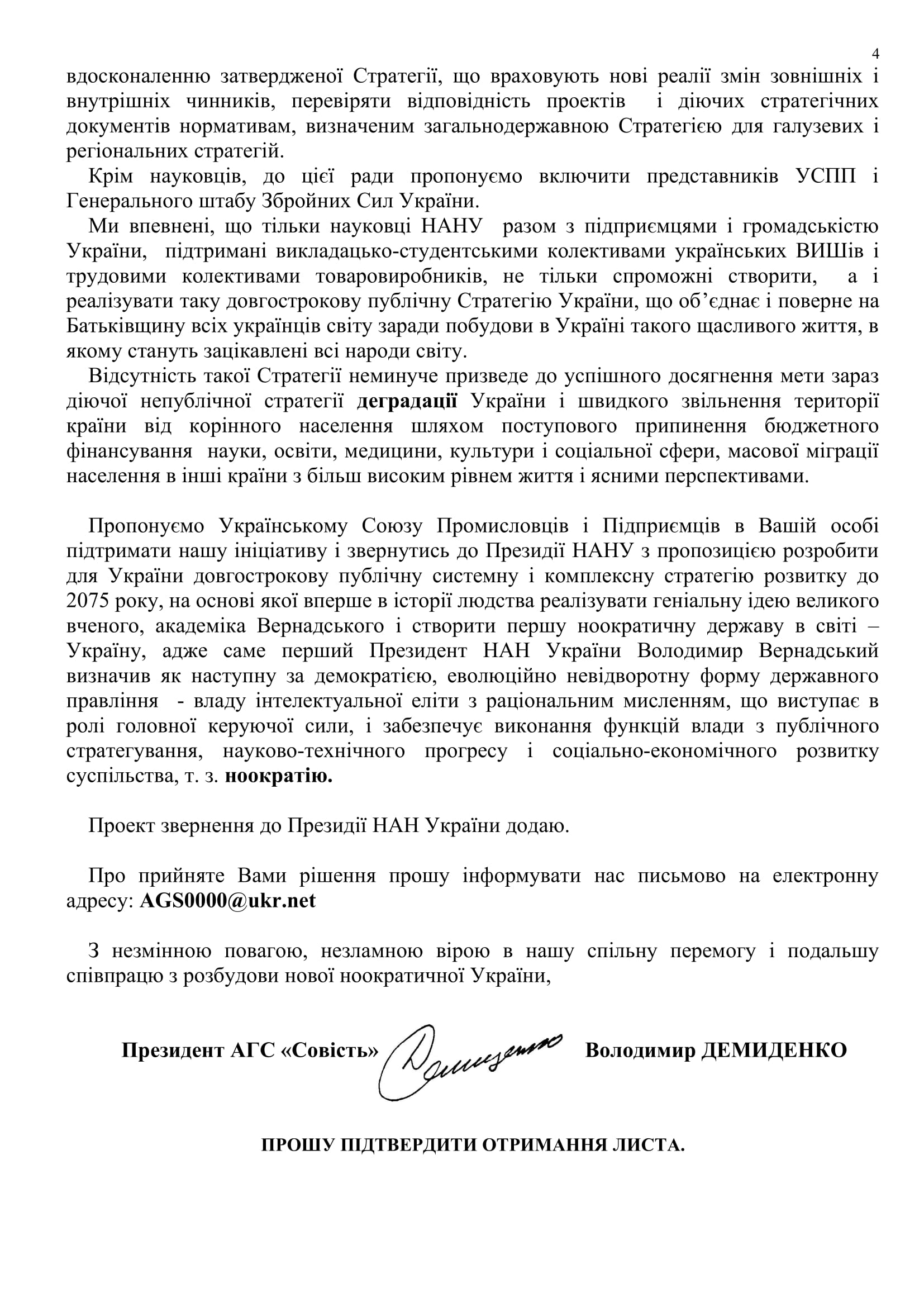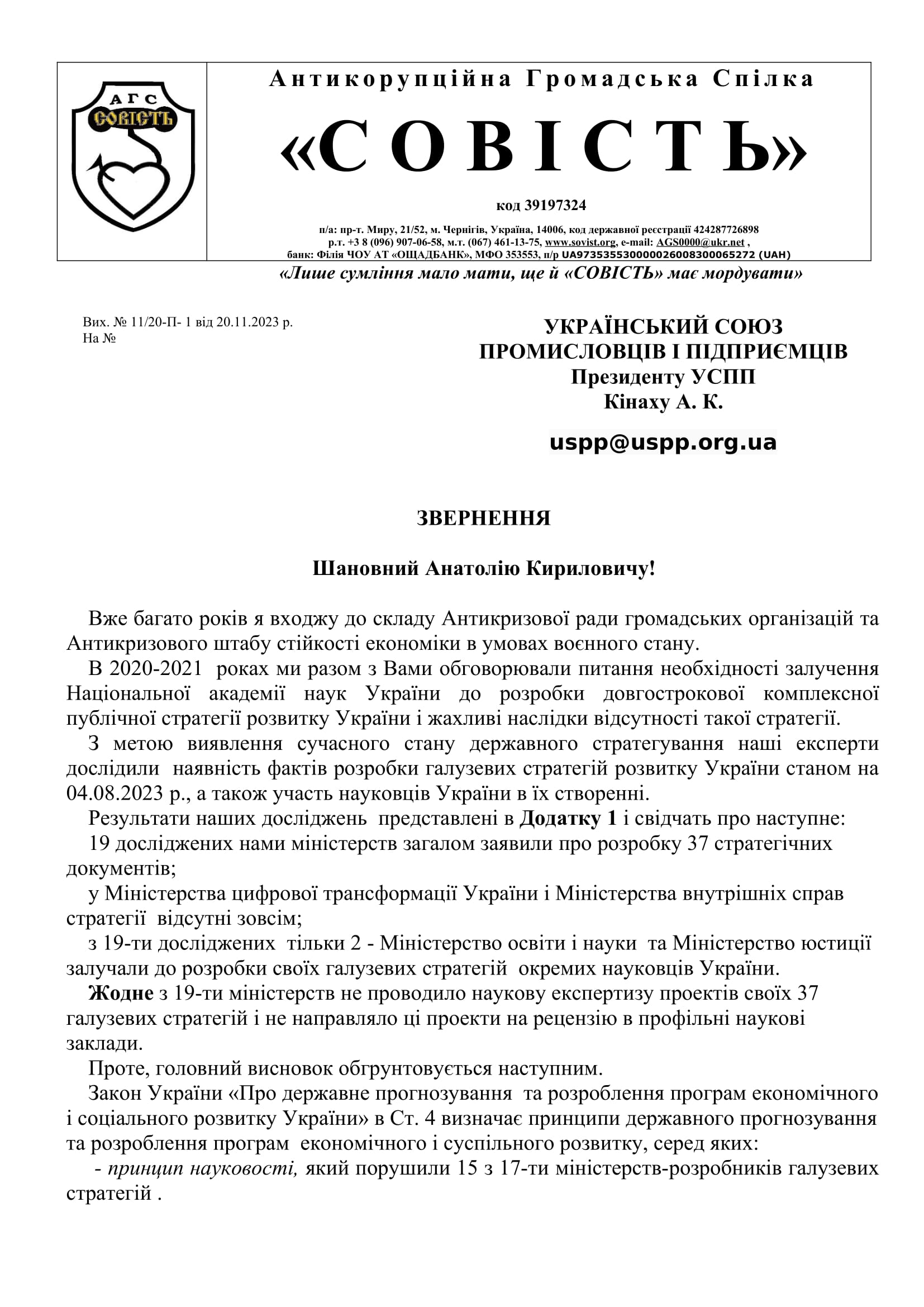 1.7.64. Звернення до УСПП щодо розробки довгстрокової стратегії розвитку України