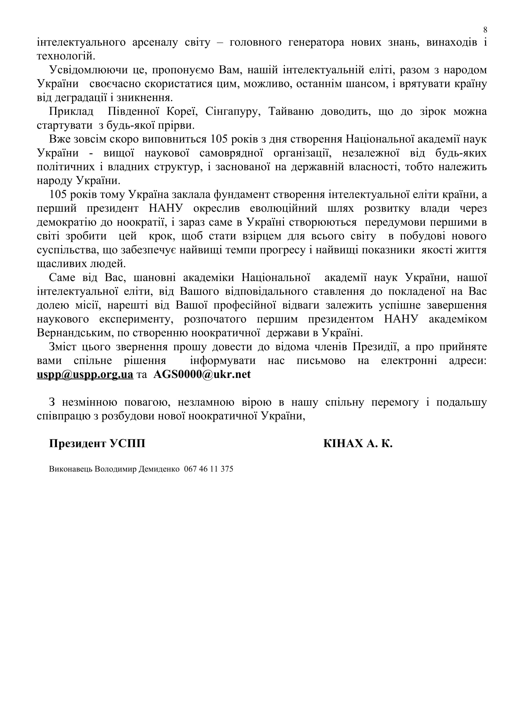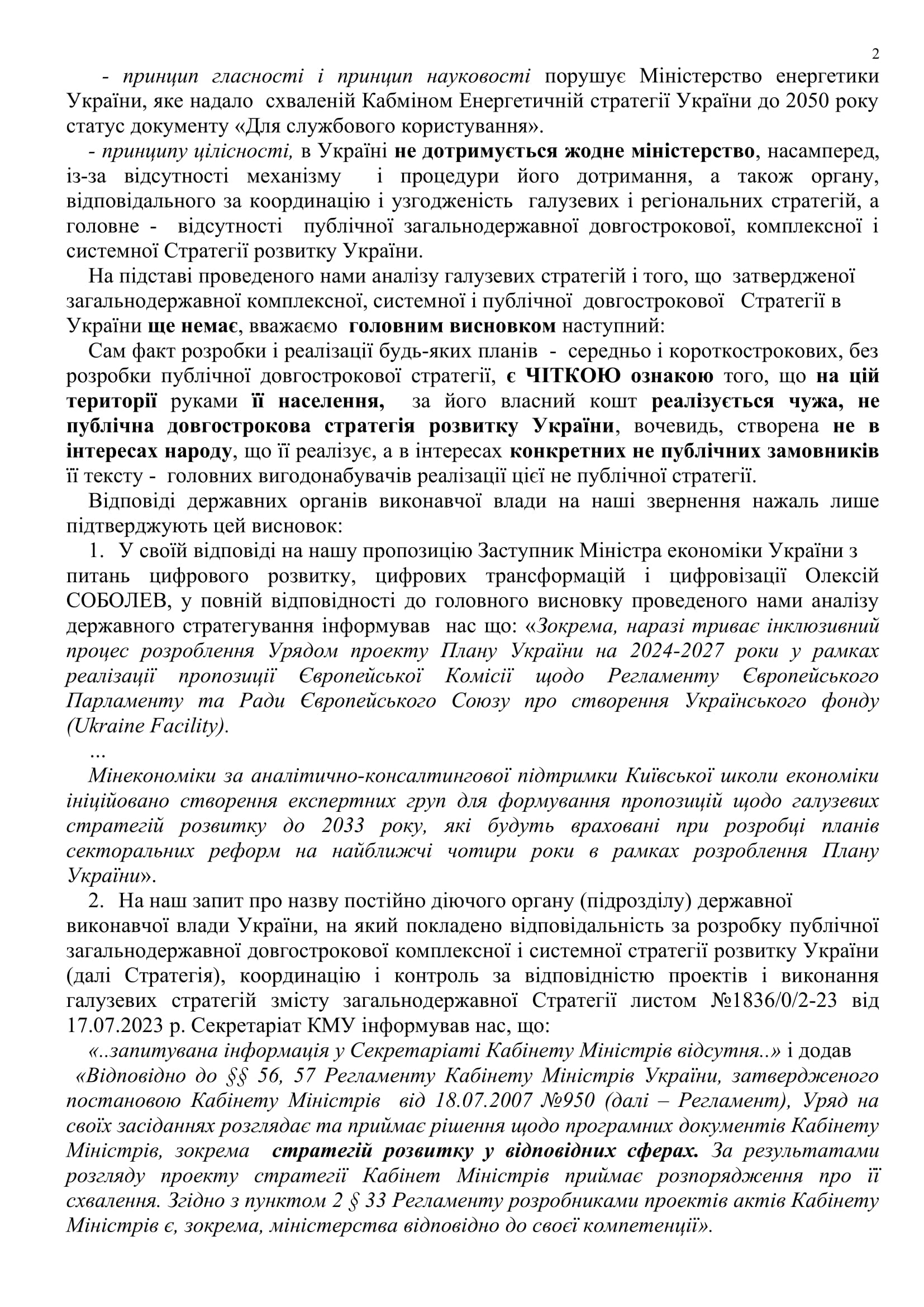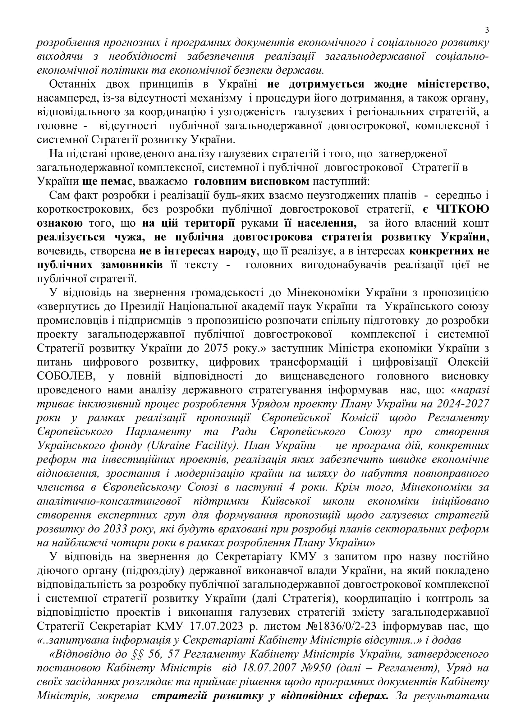 1.7.64. Звернення до УСПП щодо розробки довгстрокової стратегії розвитку України